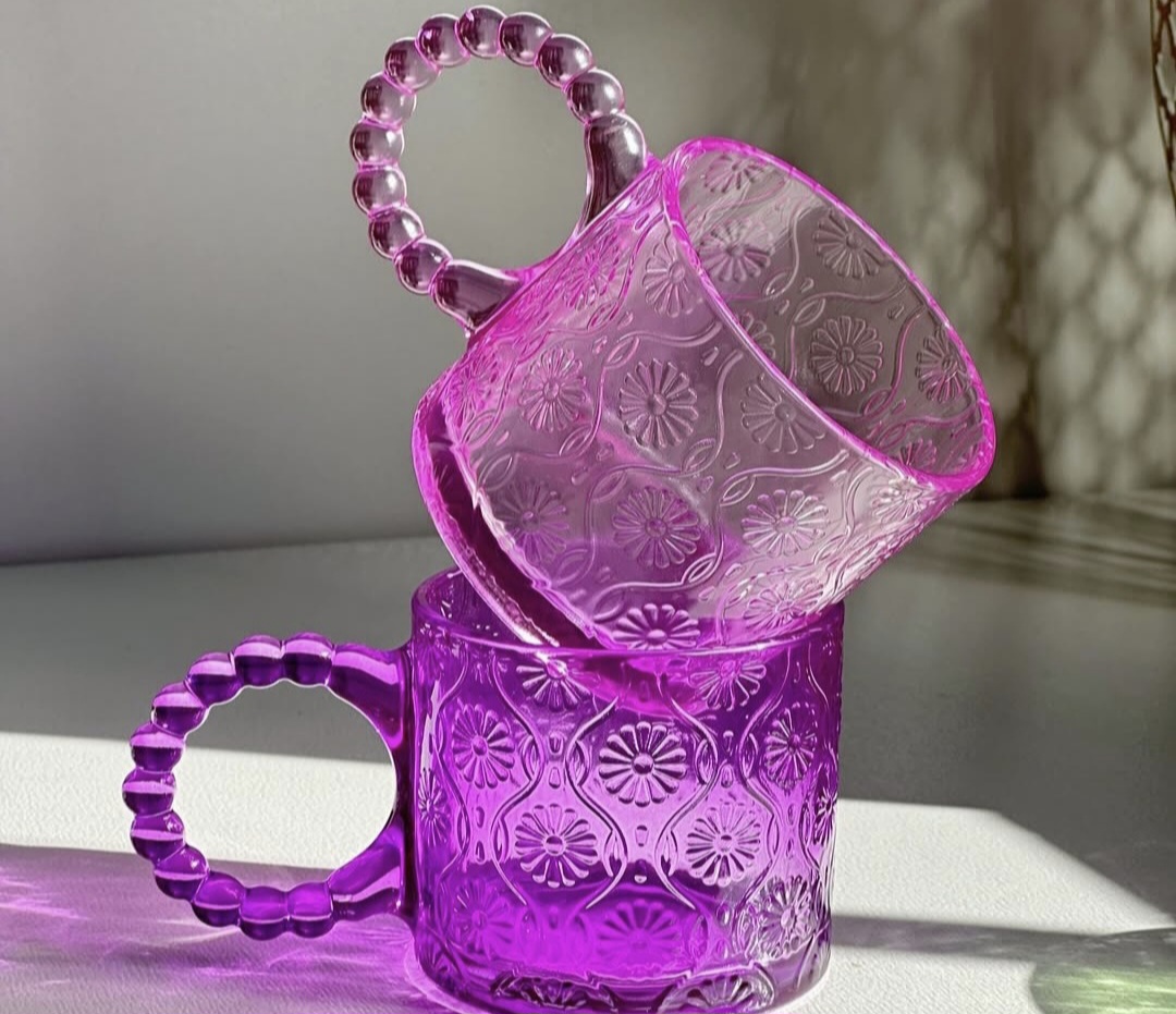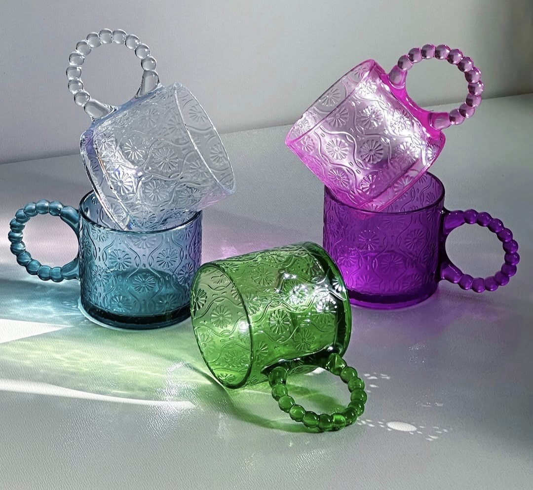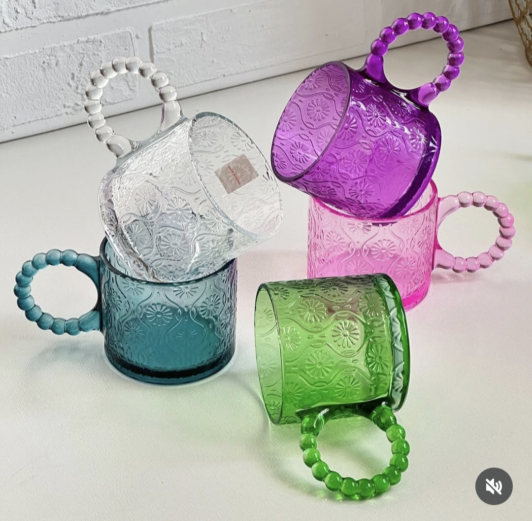 لیوان دسته مرواریدی رنگی