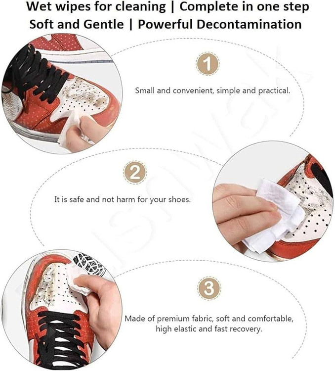 مناسب برای تمیز کردن و پاک کردن انواع کفش و کتونی های مشکی ، سفید و حتی رنگی وارداتی مرطوب بسته ۳۰ عددی