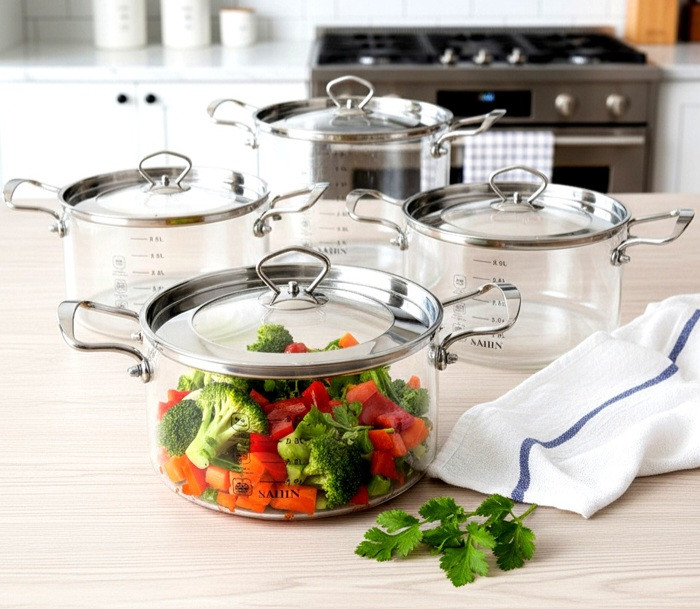قابلمه پیرکس دسته استیل حجم ۳/۵لیتر