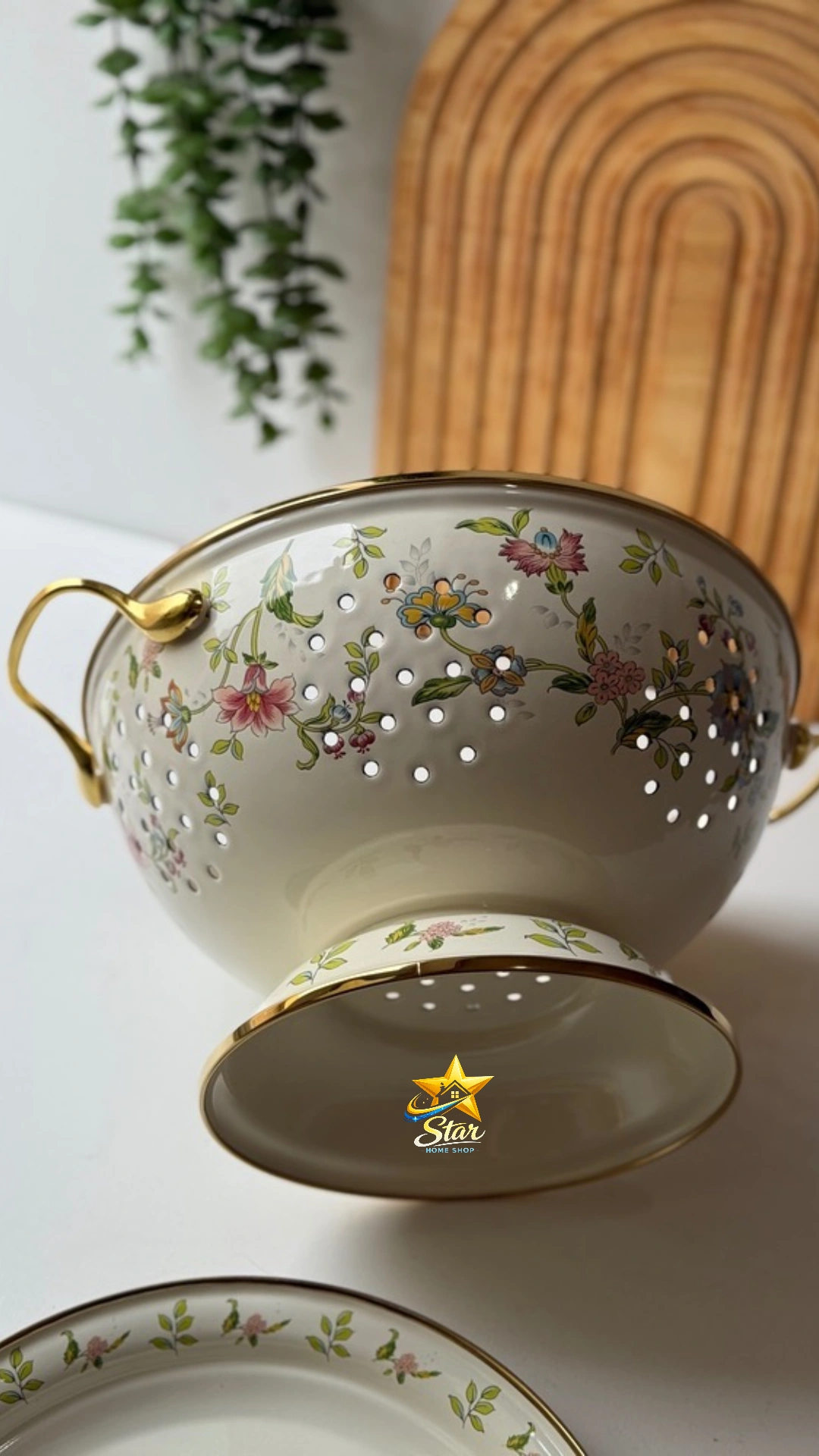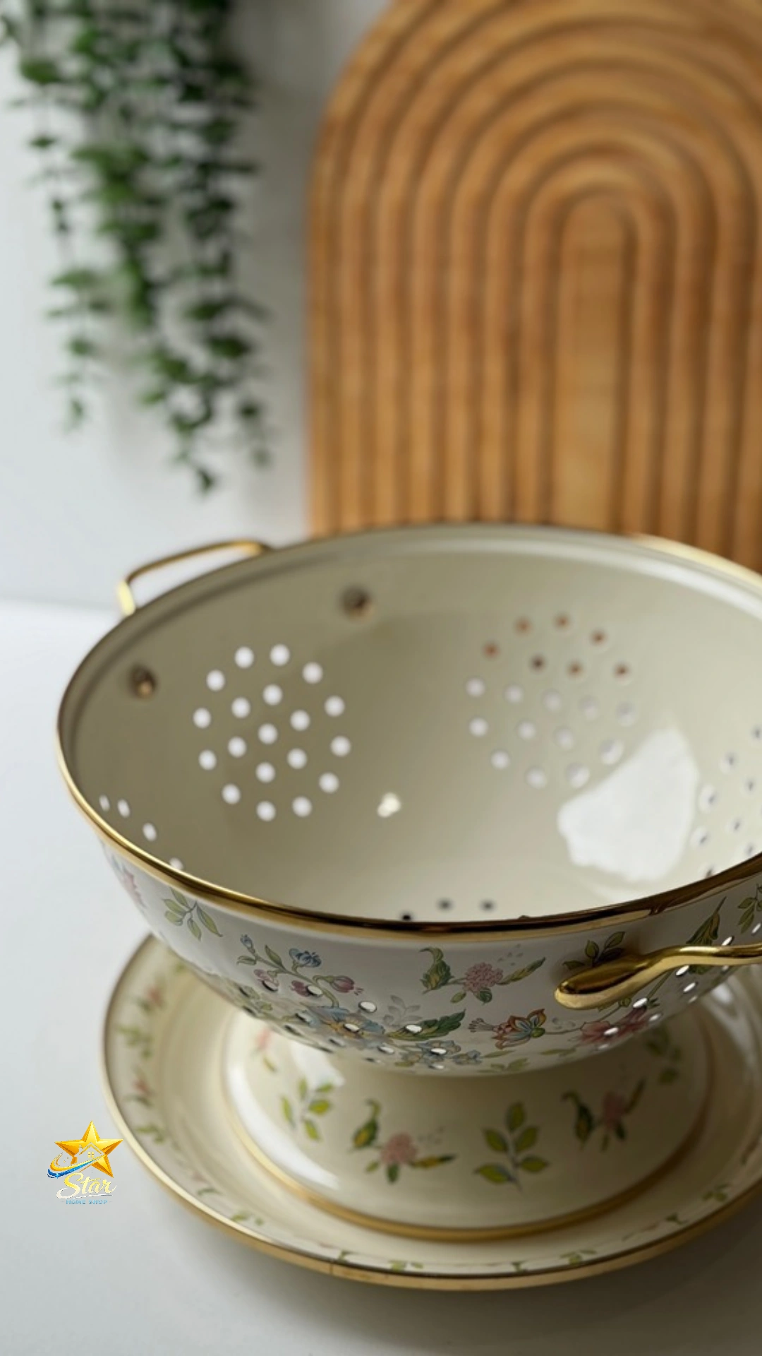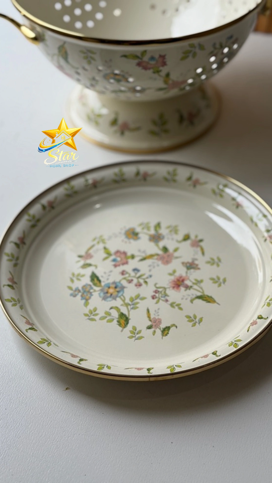 آبکش لعابی گلدار همراه دیس و سینی